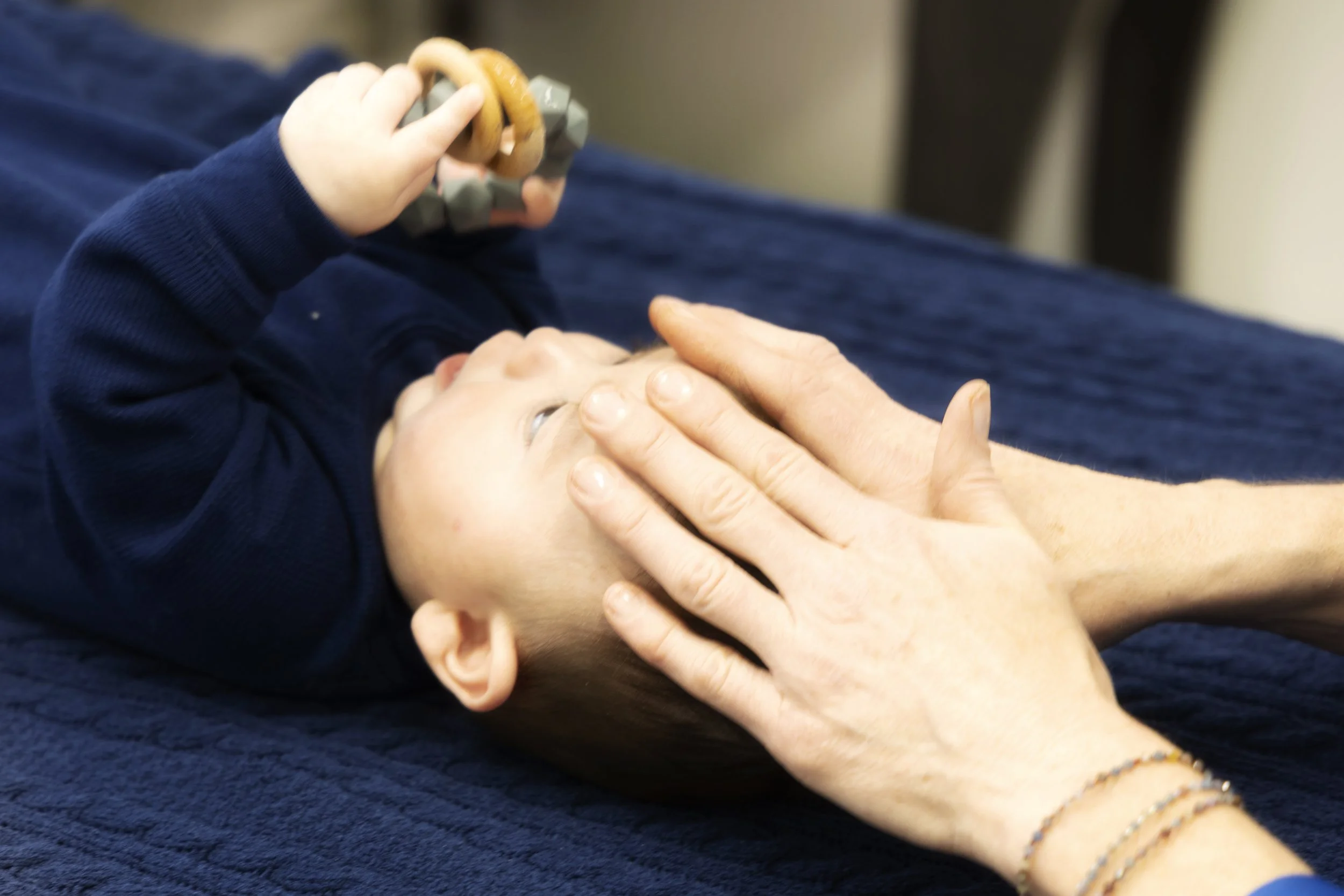 Babies’ cranial bones are often compressed simply from traveling through the birth canal. An osteopath can use gentle cranial osteopathic techniques to let these delicate bones reposition gracefully back to where they function best, to protect the brain and allow the cranial nerves to pass unhindered. The anatomical positioning of the brain, cranial nerves, bones of the head is exquisitely designed, extremely intricate and the treatment is therefore gentle, humble, and specific.
